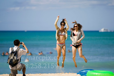 Oh, on the picture, I was doing some work on Waikiki Beach when I spotted these two girls, probably and most likely Japanese taking pictures of themselves. One would pose and the other would jump in the air, legs and arms, and hair flopping around like…a cartoon, no a Japanese cartoon character…anime.